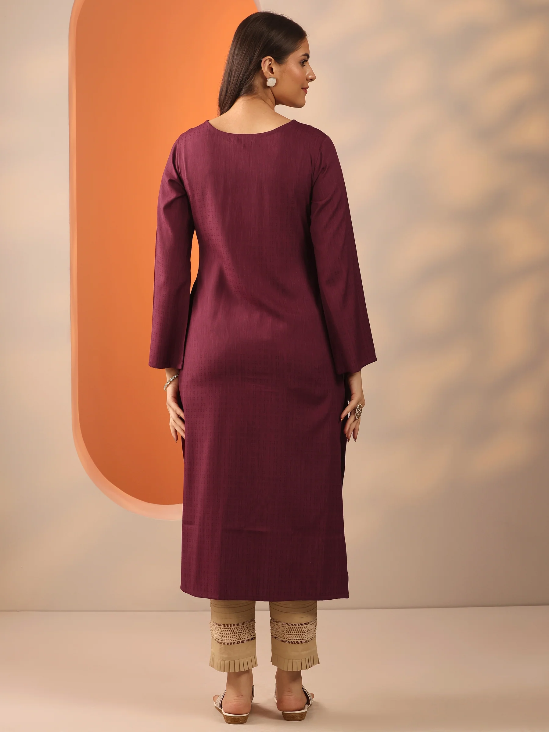 Maroon Solid Rayon Straight Kurta